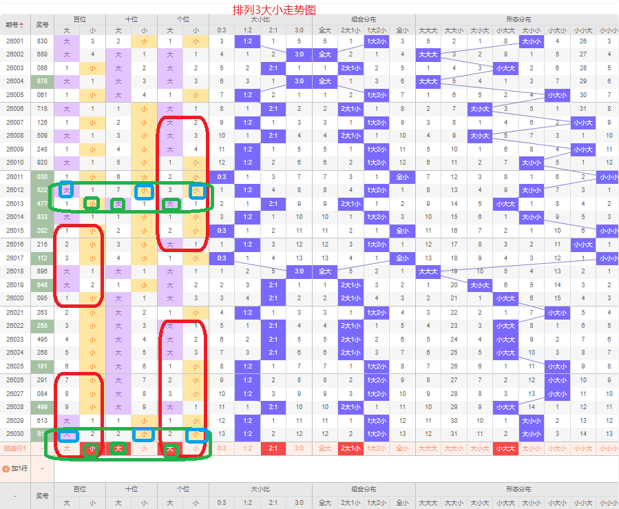 排列3第26030期开出的号码811,和值10,跨度7,奇偶比为2:1,大小比为1:2,012路个数比为0:2:1,组三的形态。