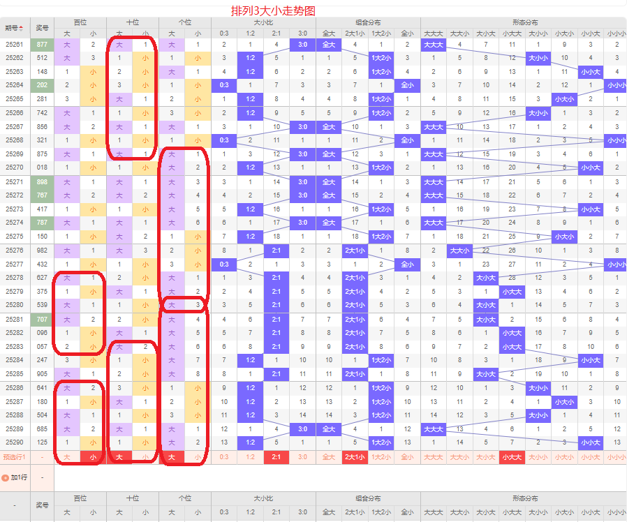 上一期大小比为1:2,两小的号码组合,近五期大号出7次,小号出8次,大小号码出现较平均,上一期是两小的号码组合,本期侧重两大的号码组合,百位本期侧重的小号码,十位本期侧重大号码,个位侧重大号码,侧重小大大或者小小大的号码组合,根据大小形态五码定位01234/56789/56789或者01234/01234/56789