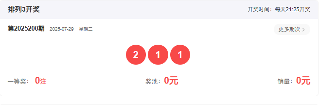 开奖号码:211