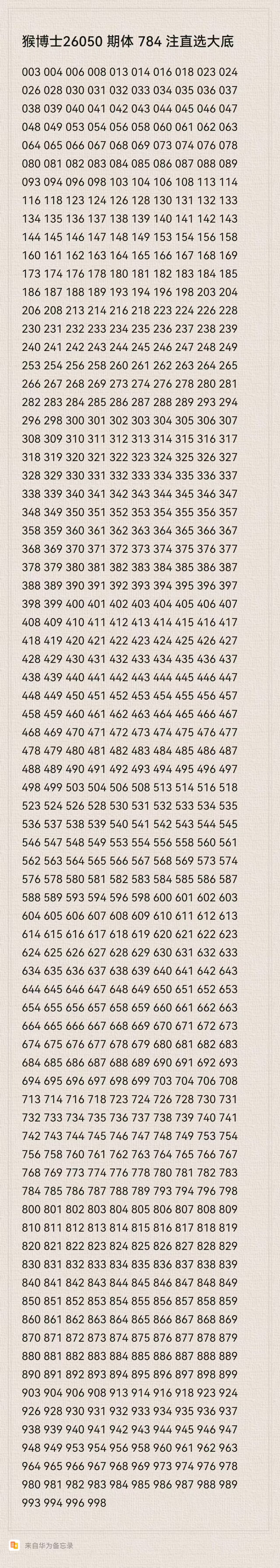 猴博士26050期排列三784注直选大底:(可以当母底用,然后进行缩水)