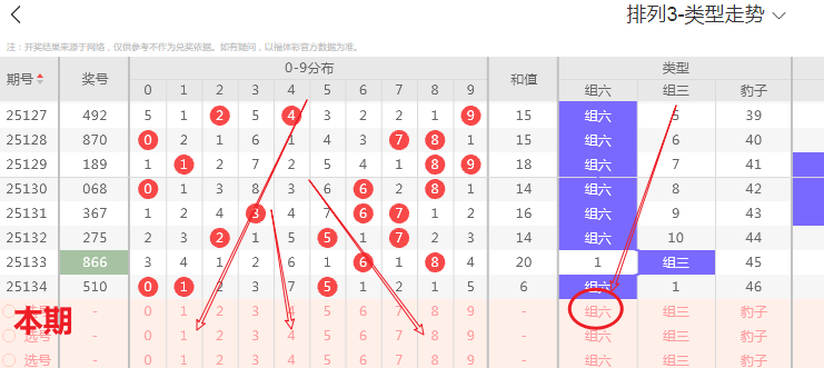 ​ 冷码分析:冷码则是长时间未出现的号码。在这组数据中,冷码为 0、6。号码 0 和 6 已经有较长一段时间没有出现在开奖号码中,根据彩票号码出现的随机性和周期性,它们在未来某期出现的概率会逐渐增加,本期也不能完全忽视这两个冷码。​