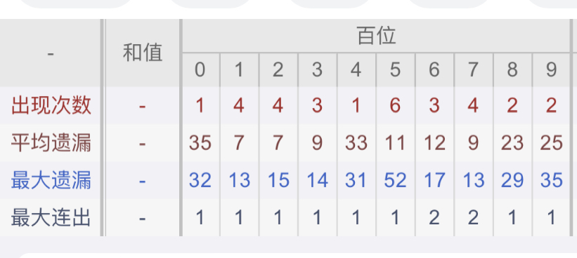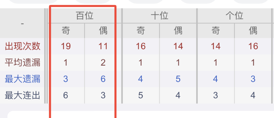 从近30期数据我们可以看出百位1257是热码,这个冷热码数据我们结合之后的分析再利用它