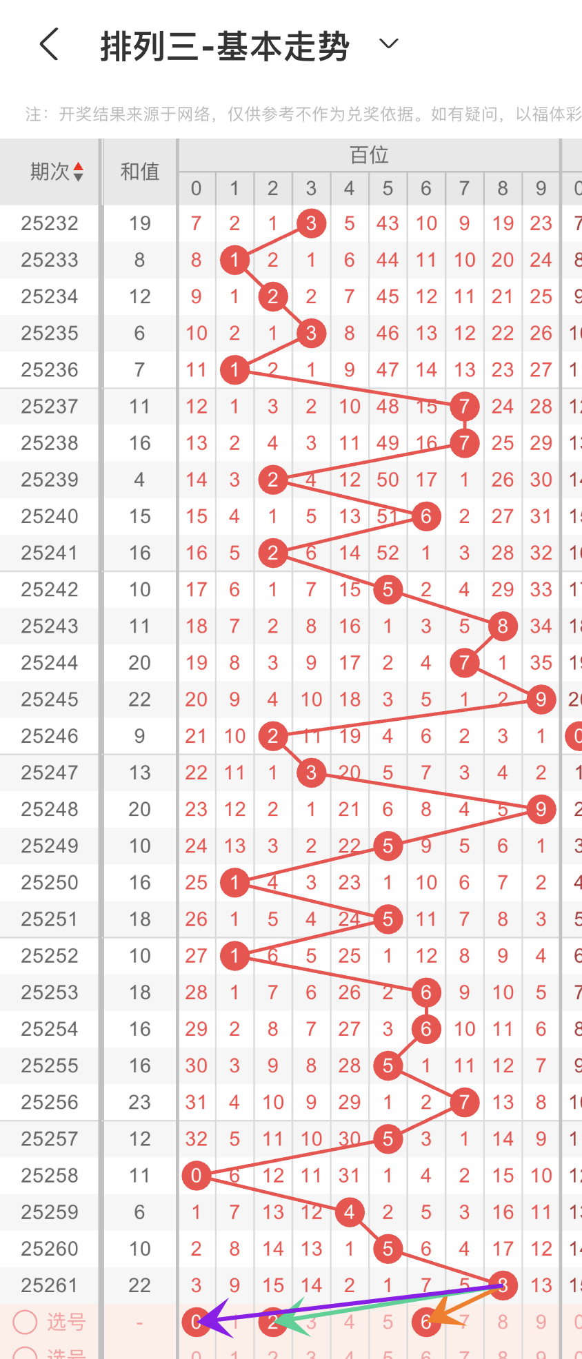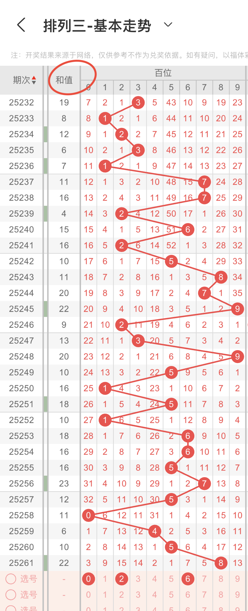 结合上面的大小、奇偶以及012路比,我们可以得到的数据分别是第一组56789,第二组02468,第三组0369,我们重点选择3组数据中重复的,那百位我们选择6,0路的0,2路的2,综上所述百位选026