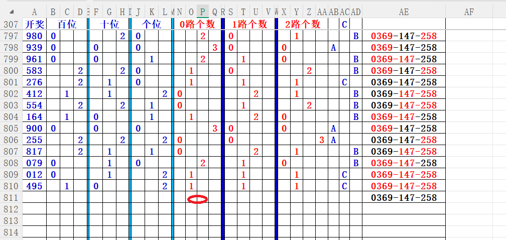 如上图56,012路分析0路出号的概率还是很大,本期可以从0路号入手做胆0369中选;看好369胆码。