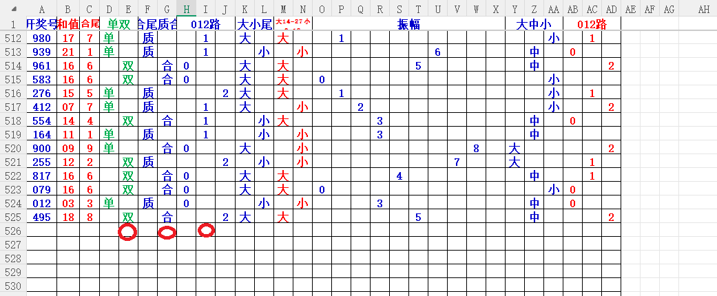 如上图2,012路分析,01路尾走比较好,关注3456尾;