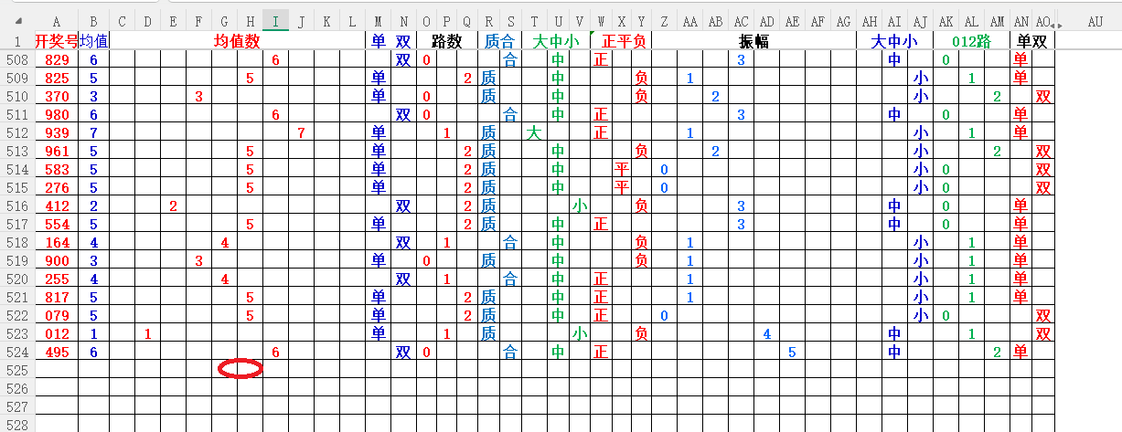 如上图1,大中小分析,均值小中大数比较好,也就是 3456 均值最好,重点:45。