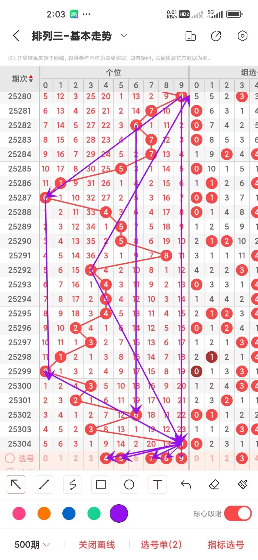 2025305期,上期十位开出奇数7,我们从500期,走势图来分析012路分别开出多少次,目前0路开出总数181次,0369分别开出,0开出48次,3开出48次,6开出31次,9开出54次,0369之间6目前下号最少,再来看1路号码的分析,1路号码开出总数167次,147分别开出,1开出46次,4开出52次,7开出62次,目前7开出最多,再回过头来看2路号码的走势,目前2路号开出的总数152次,258分别开出是,2开出54次,5开出46次,8开出52次,这三者之间差别不大在平衡状态,通过500期走势我们可以看出十位目前走势1路号码走势比较好,369号码走势比较冷淡,十位上的热号码是4,重点可以关注下冷号3,防其它冷号回补,十位上今天看好冷号,具体看走势图