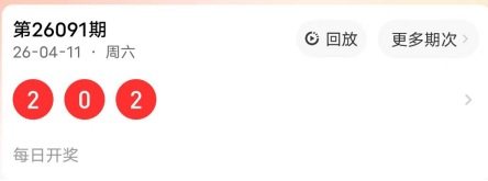 2026091期开奖号码为202,奇偶值为3偶;大小值为3小;012路走势为022路;跨度为2跨;和值4点;组三形态。