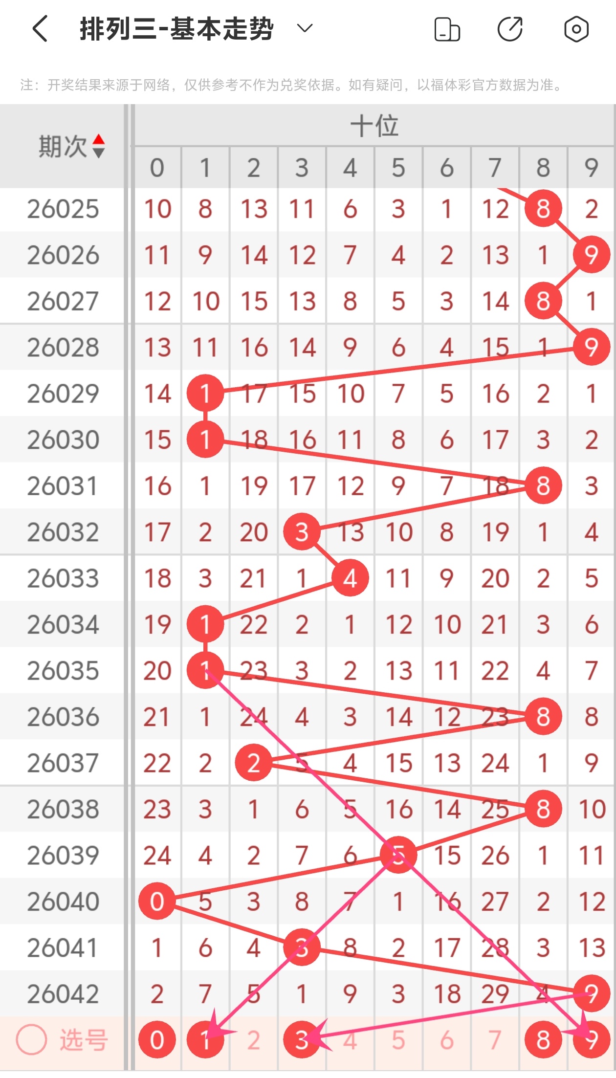 通过以上简单分析,我们看下26043期号码的定位分析: