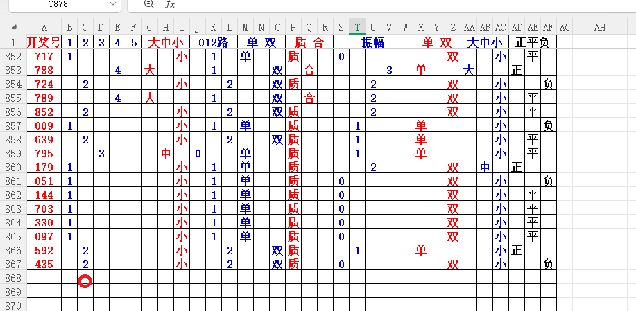 如上图7,012路分析-1路出号的概率还是很大,本期可以从1路号入手4代表78。