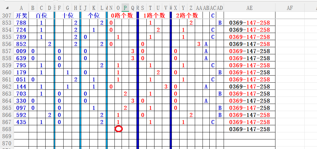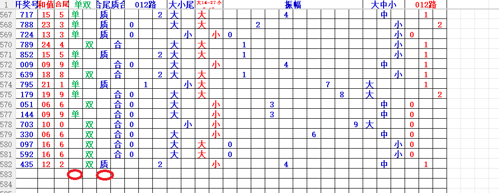 如上图56,012路分析0路出号的概率还是很大,本期可以从0路号入手做胆0369中选;看好369胆码。