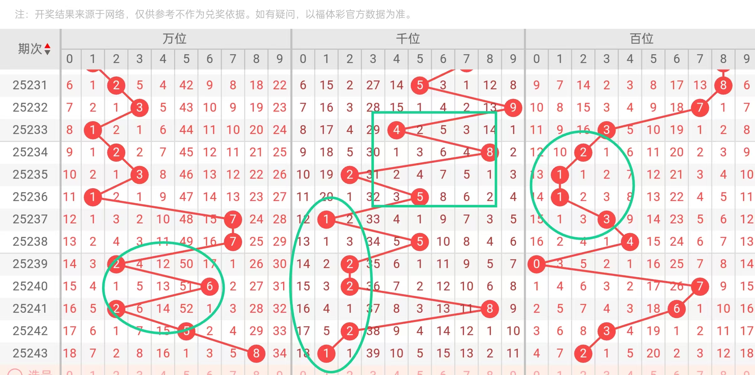 综合上述分析,数字“0”在排列三前三位中缺乏支持条件,建议下期排除该号码。