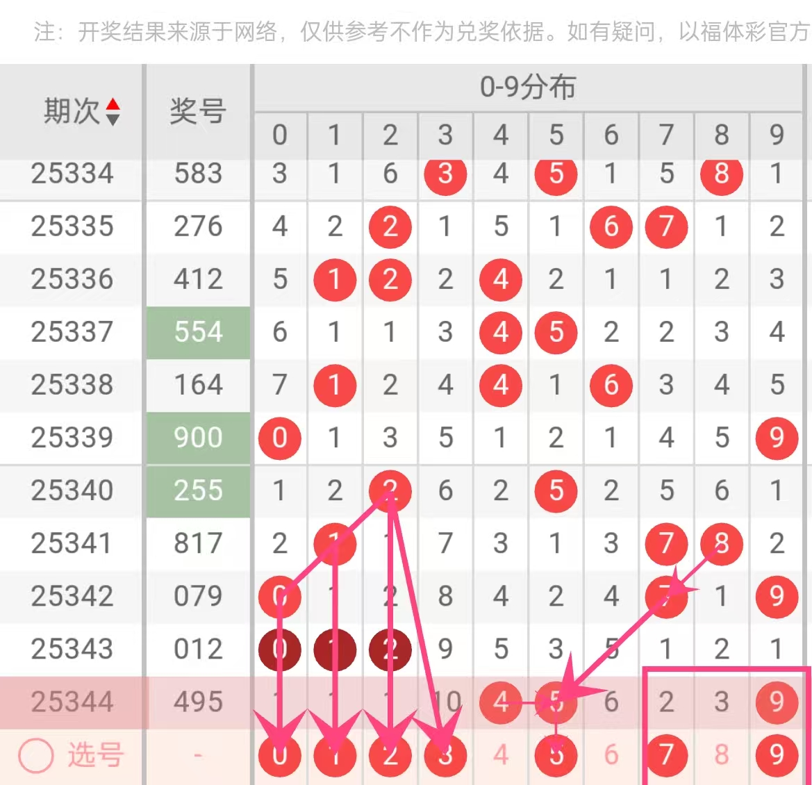 理由:数字0在近5期出现2次,且在第二期和第三期连续重复,显示其重复出现的特性。0是小偶数、合数,在近期奖号中,小号虽在第二期全小,但其他期均以2大1小为主,0作为小号可平衡大小比。和值波动大(最低3,最高18),0能有效拉低和值,防止过高。0的遗漏间隔短,回补速度快,常跟随热号(如5)出现,在奇偶平衡中作为偶号调节比例,值得关注。