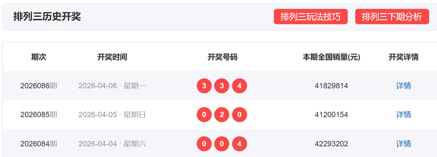 体彩排列3上一期,开奖号码为334,形态为组三,奇偶比为2:1,012路数值表现为001,和值10,和尾0,跨度1。