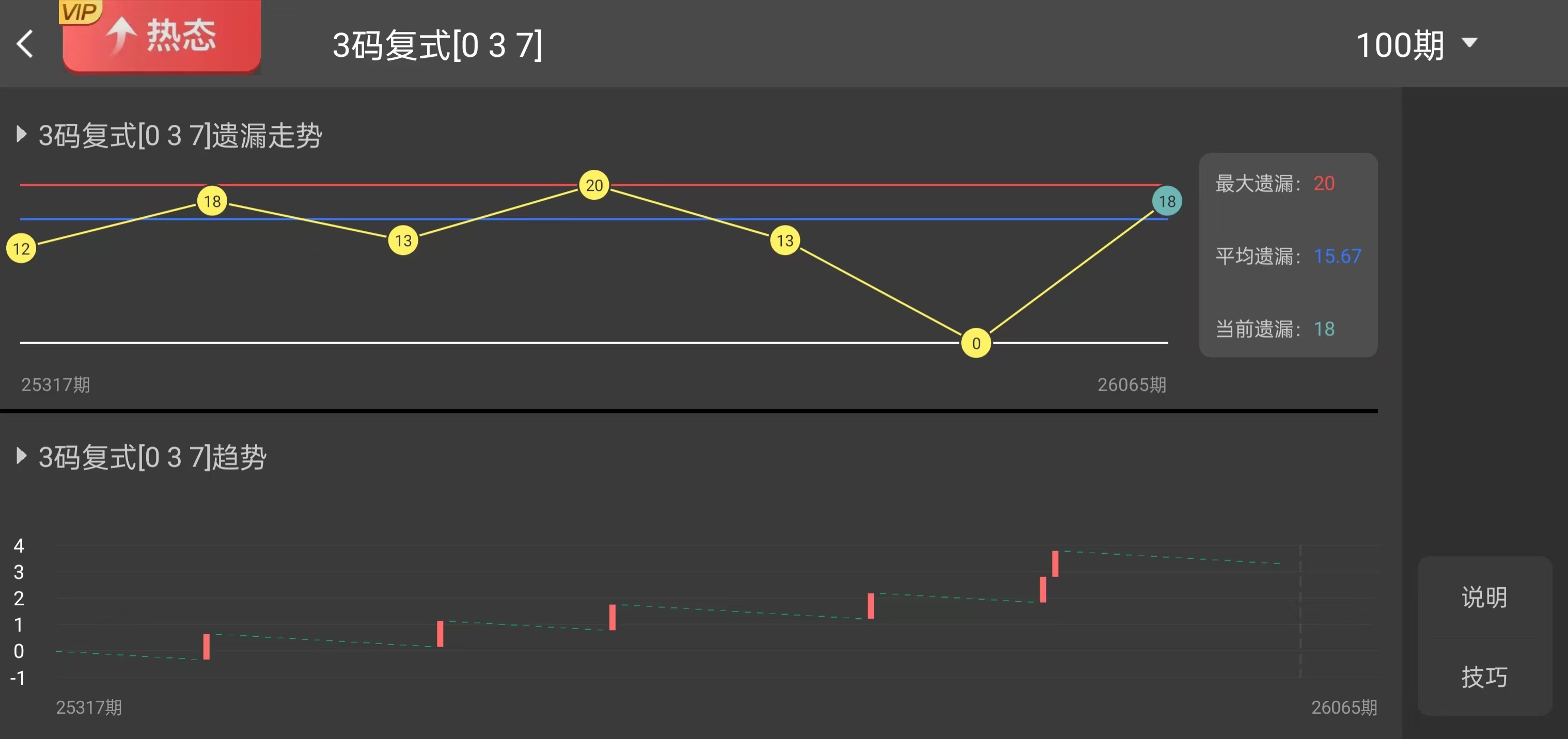 跨度角度:匹配近期高频数值排列三跨度 = 最大数 - 最小数,357 跨度 = 7-3=4。近 6 期奖号跨度依次为 7、6、5、4、4、7,跨度 4 出现 2 次,为近期高频跨度之一,避开 1-3 等低频跨度,契合近期跨度分布特征。