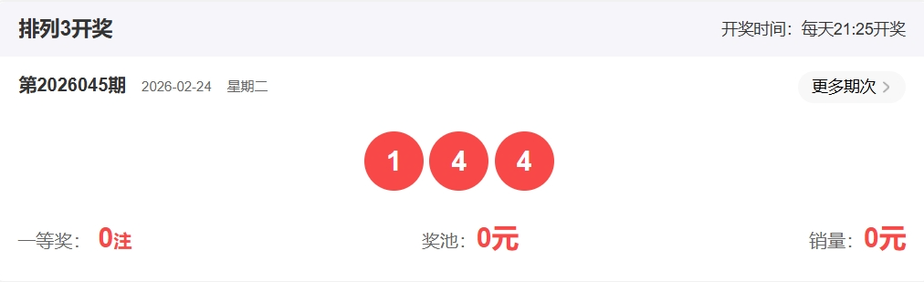 排列三第2026045期开奖回顾:开奖号码:144   形态:组三
