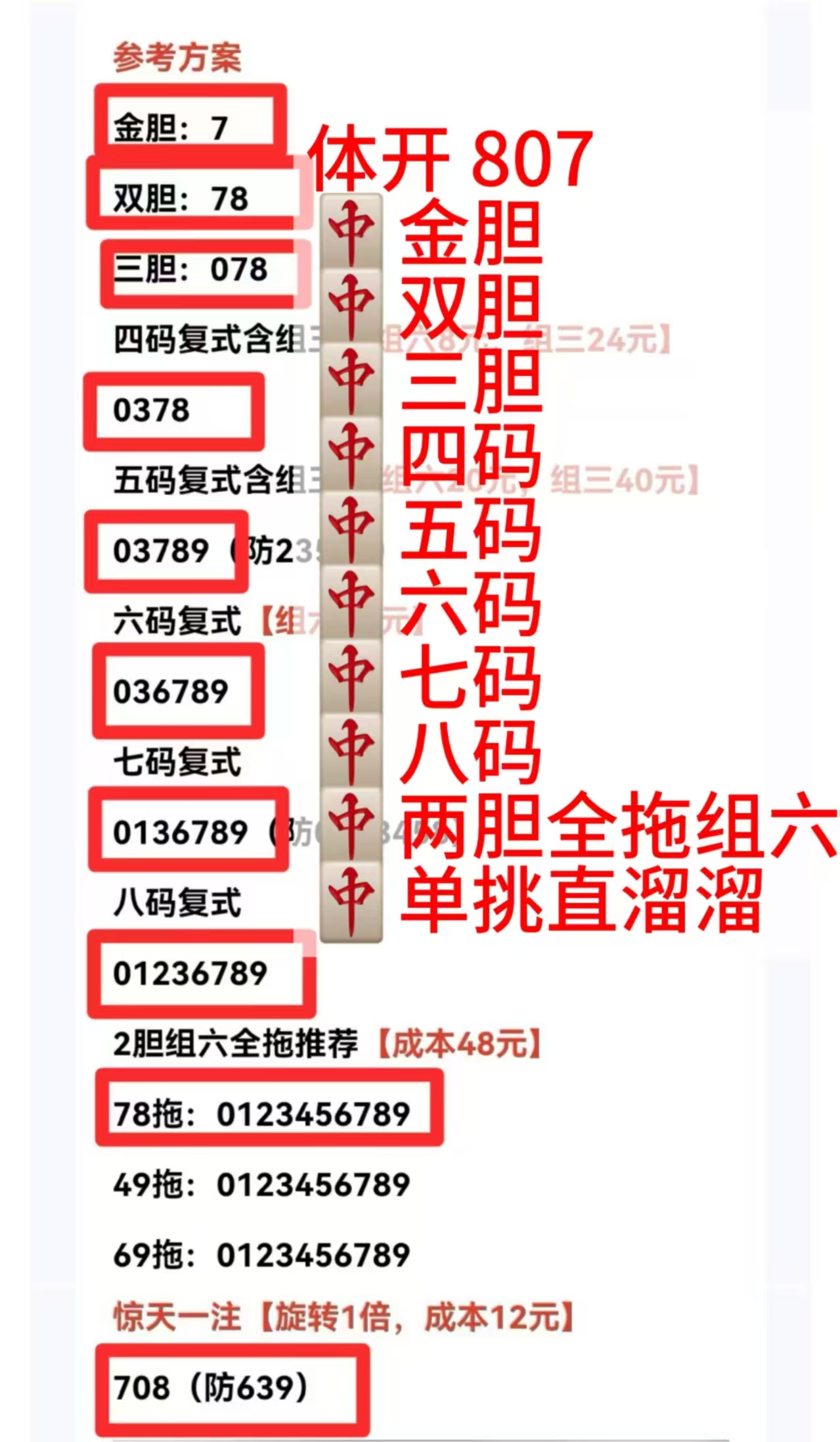 2026056期 命中组选,命中金胆,命中五、六、七码组选,命中和值