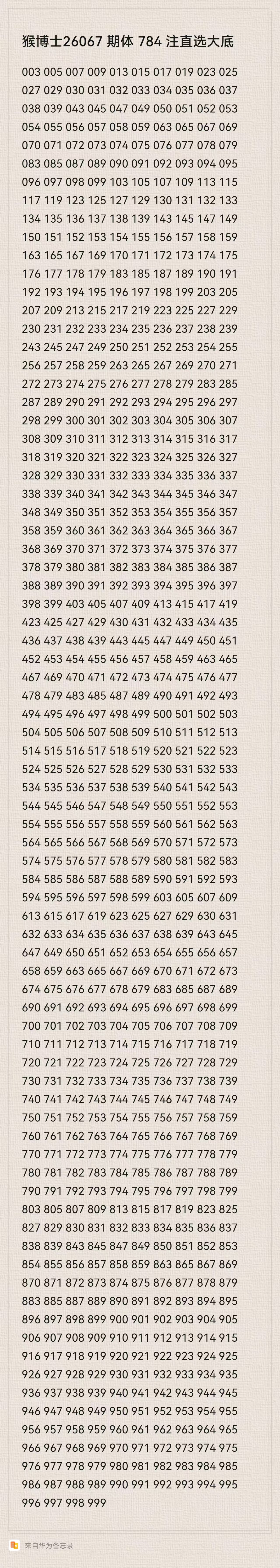 猴博士26067期排列三784注直选大底:(可以当母底用,然后进行缩水)