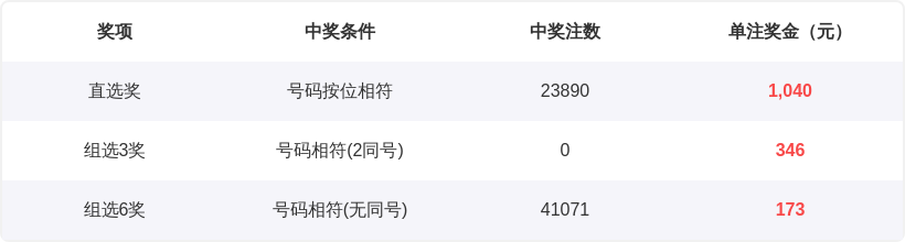 | 25314 | 8 0 2 | 组六 | 0 | 1:2 |