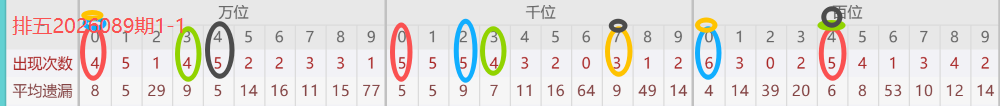 下图所圈出的为近30期各位置所出现的热码出现次数及平均遗漏值,用以参考和一些冷码组合选号。