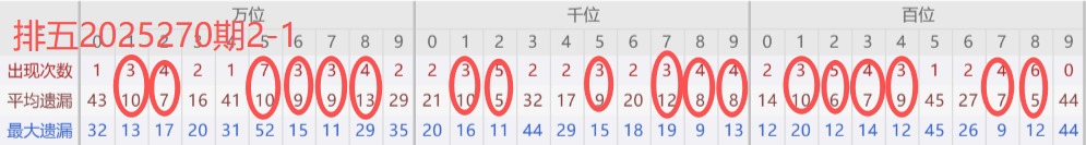 2025269期开奖号码87502,万位近30期8出现4次数 ,千位近30期7出现3次数,百位近30期5出现1次数 (减位回补),十位近30期0出现6次数 ,个位近30期2出现4次数 。