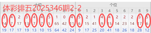 2025343期开奖号码01259,万位近30期0出现3次数 ,千位近30期1出现5次数,百位近30期2出现2次数(较344期减一),十位近30期5出现4次数(减位回补) ,个位近30期9出现5次数 。