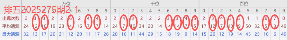 下图所圈出的为近30期各位置所出现的热码出现次数及平均遗漏值,用以参考和一些冷码组合选号。