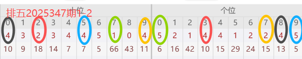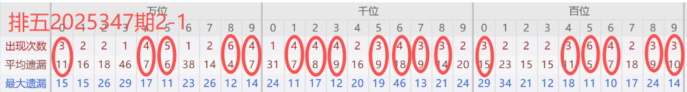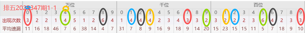 2025343期开奖号码01259,万位近30期0出现3次数 ,千位近30期1出现4次数(较346期减一),百位近30期2出现2次数(较344期减一),十位近30期5出现4次数(减位回补) ,个位近30期9出现5次数 。