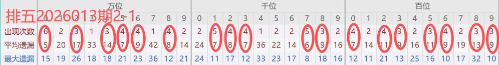 下图所圈出的为近30期各位置所出现的热码出现次数及平均遗漏值,用以参考和一些冷码组合选号。