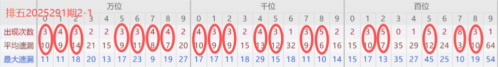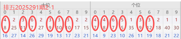 下图所圈出的为近30期各位置所出现的热码出现次数及平均遗漏值,用以参考和一些冷码组合选号。