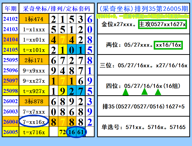 (采奇坐标)视频经典回顾,排列35第006期,一招套中两定xx16三位0x16x 2026-01-06 10:09:46 排列35第006期,(采奇坐标)视频经典回顾 开奖后再能回顾,原视频17点前已发会员区 一招套中两定xx16,三位0x16,主攻0xx6x 排列35第006期,(采奇坐标)视频定标套码