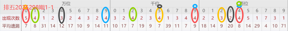 2025296期开奖号码05235,万位近30期0出现5次数 ,千位近30期5出现4次数,百位近30期2出现3次数 ,十位近30期3出现7次数 ,个位近30期5出现3次数(较297期减1) 。