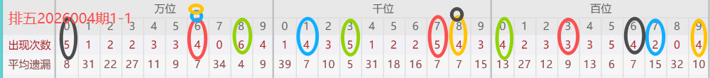 下图所圈出的为近30期各位置所出现的热码出现次数及平均遗漏值,用以参考和一些冷码组合选号。