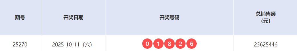 第2025270期排列五开奖号码为 0-1-8-2-6,和值 17,奇偶比为 1:4,大小比为 2:3,跨度 8,012路形态为 0路、1路、2路、2路、0路。全国一等奖开出82注,每注奖金100,000元。本期我们将结合近30期走势数据,为大家带来第271期的分析推荐。