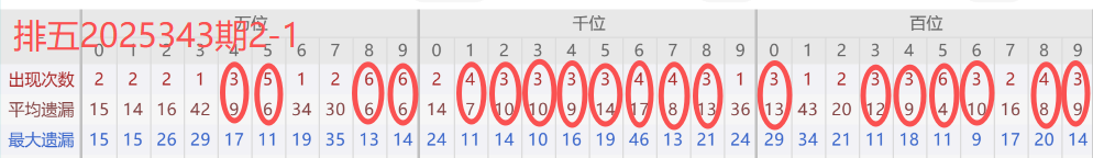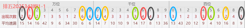 下图所圈出的为近30期各位置所出现的热码出现次数及平均遗漏值,用以参考和一些冷码组合选号。