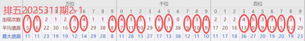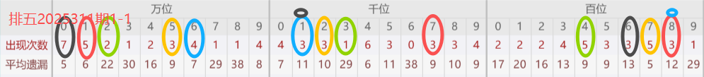 2025310期开奖号码01659,万位近30期0出现7次数 ,千位近30期1出现3次数,百位近30期6出现3次数 ,十位近30期5出现4次数 ,个位近30期9出现5次数 。