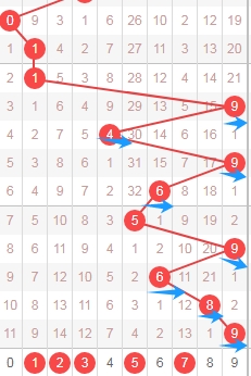 从合数数字和质数数字来分析,上图是体彩排列五从左到右定位中第一位走势图,我在上面走势图中标注出来的数字都是合数04689,最近6期开奖号码中就出现了5个质数数字,个人观点那么本期出合数的概率比出质数概率大,那么本期个人观点就是关注这位数字出合数04689,个人看好数字6,数字8,数字9。