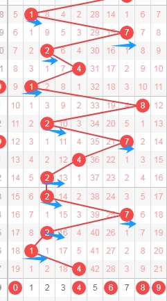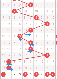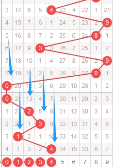 从最近开奖号码遗漏周期来分析,上图是体彩排列五从左到右定位中第四位走势图,我在上面走势图中标注出来的数字都是遗漏周期小的数字01234,最近6期开奖号码中就出现了5个遗漏周期大的数字,尤其最近两期开出的号码遗漏周期都大,那么本期个人观点就是遗漏周期小的数字概率比遗漏周期大的数字概率大,关注遗漏周期小的数字01234,个人看好数字0 1 3 4。