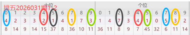 通过对比可发现各位置数字出现规律,有的数字频繁出现,有的则长期蛰伏,我们可以通过这个规律对数值进行一个组合,组和时要对冷热号做个定位。