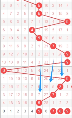 上图是体彩排列五从左到右定位分析第四位数字走势图,我在上面走势图中标注出来的数字都是质数数字12357,标注出来的蓝色小箭头表示的都是合数数字,很明显发现最近合数数字连续开出了5期,那么本期出质数的机会是有的,关注数字12357,个人最看好数字137。