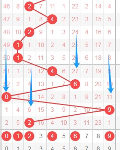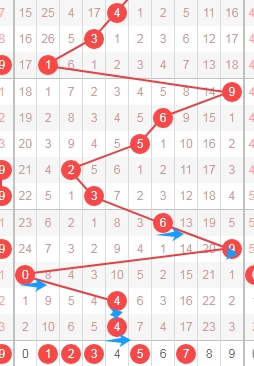 上图是体彩排列五从左到右定位分析第一位数字走势图,我在上面走势图中标注出来的数字都是合数数字04689,到本期为止质数数字连续开出了5期,看上面标注出来的蓝色小箭头就知道,最近开出的质数数字多, 那么本期合数数字有机会,关注合数数字04689,个人最看好069。