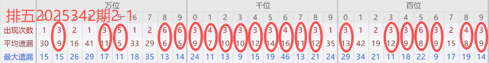 下图所圈出的为近30期各位置所出现的热码出现次数及平均遗漏值,用以参考和一些冷码组合选号。