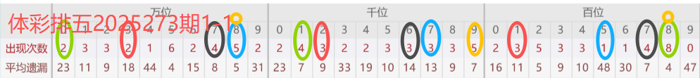 2025269期开奖号码87502,万位近30期8出现4次数 ,千位近30期7出现3次数,百位近30期5出现1次数 (减位回补),十位近30期0出现6次数 ,个位近30期2出现3次数(较270期减一) 。
