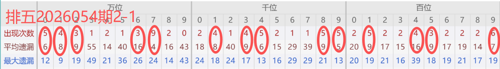 2026051期开奖号码04537,万位近30期0出现5次数(减位回补) ,千位近30期4出现3次数,百位近30期5出现3次数(较053期减2),十位近30期3出现3次数 ,个位近30期7出现6次数(较053期减一) 。