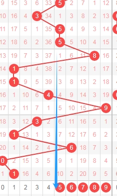 上图是体彩排列五第五位数字走势图,我们看看上面走势图标注出来的数字都是偶数数字,最近连续开出了5期偶数数字,那么本期个人观点就是关注第五位数字出奇数数字13579,个人最看好数字159;