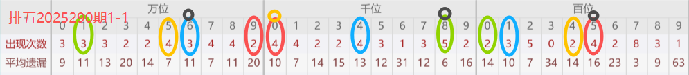 下图所圈出的为近30期各位置所出现的热码出现次数及平均遗漏值,用以参考和一些冷码组合选号。