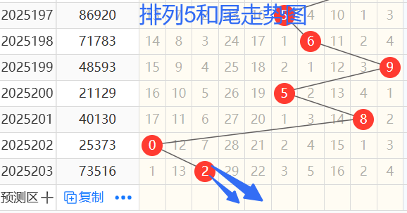 依次是95802和尾,按照012路排序是02202路和尾,后面两期不是同路,今天就是2路或0路的和尾,为什么这么讲呢,这个是个大概率的问题,也是根据长期的研究规律定的,准确率相当高,我们定了2 0路的和尾,也就是2580369和尾,那么我们再来看和值,按照和值除3余数的话,可以分为余0 1 2路. 那么我们来看和值余数:199期和值29余2,200期和值15余0,201期和值8余2,202期和值20余2,203期和值22余1,结合路数关系来讲,所以和值可余2和余0,结合上面的和尾的话就只有2580369尾, 这几个尾数。和值的话就是12 15 18 20 23 26 29 32 这几个和值。