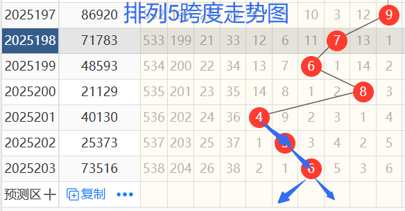 依次是68456跨度,按照012路的排序是02120路跨度,后面两期不是同路跨度,根据路数转换关系来看,本期2 0路跨度,那么跨度我们暂定258369跨,个人比较看好5 7跨度