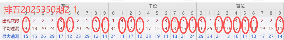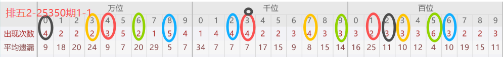 下图所圈出的为近30期各位置所出现的热码出现次数及平均遗漏值,用以参考和一些冷码组合选号。