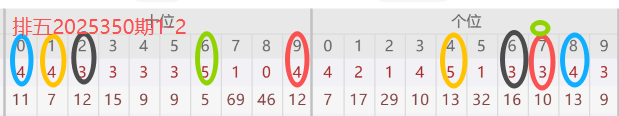 通过对比可发现各位置数字出现规律,有的数字频繁出现,有的则长期蛰伏,我们可以通过这个规律对数值进行一个组合,组和时要对冷热号做个定位。